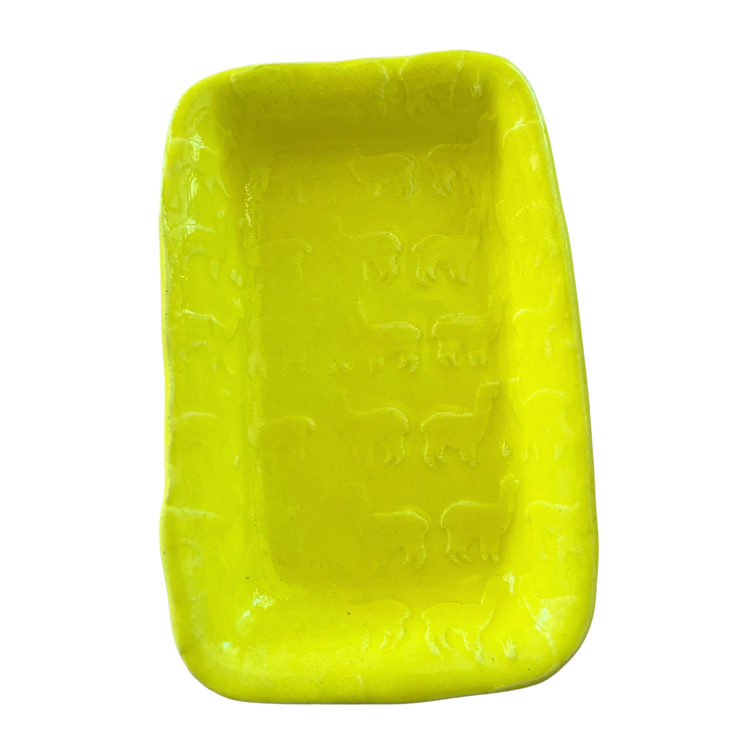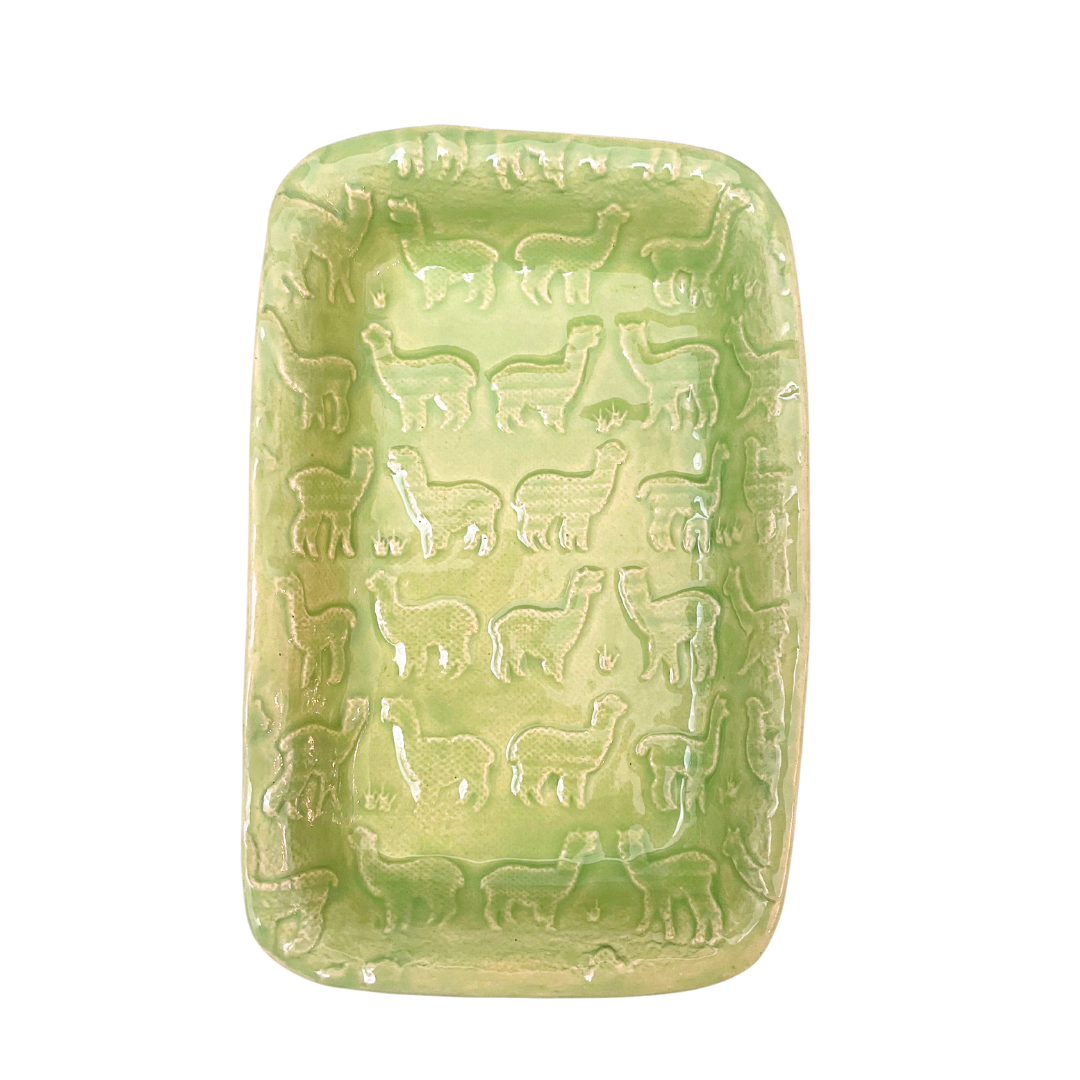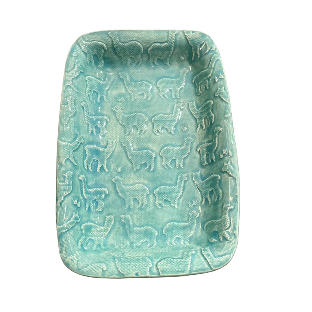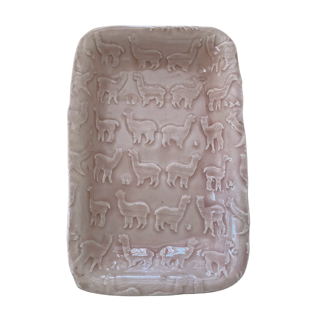 Bring a touch of whimsy to your home with this handmade rectangular pottery dish, adorned with an intricate alpaca imprint. Thoughtfully crafted in New York, each dish is a unique piece of art that celebrates the charm of these beloved animals.